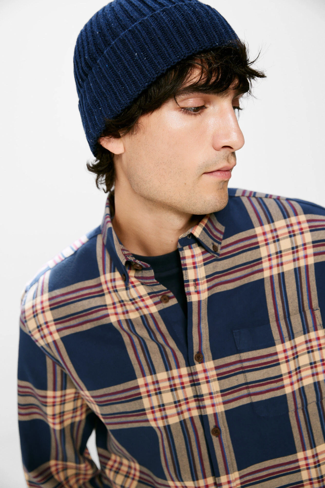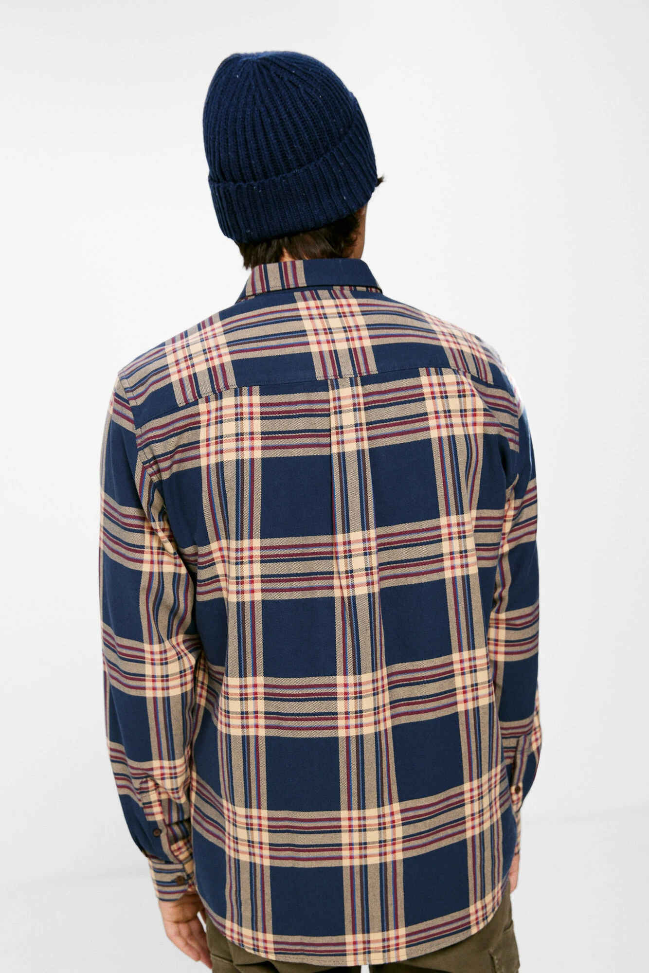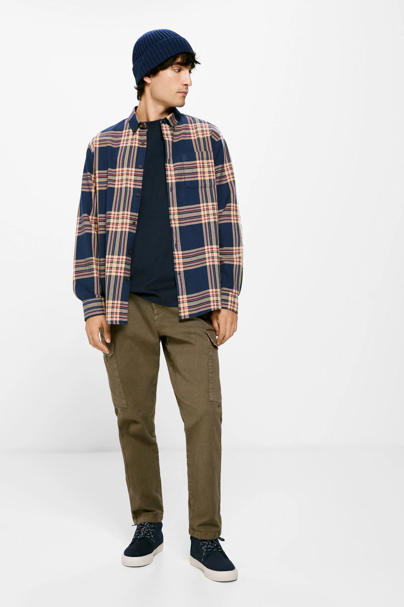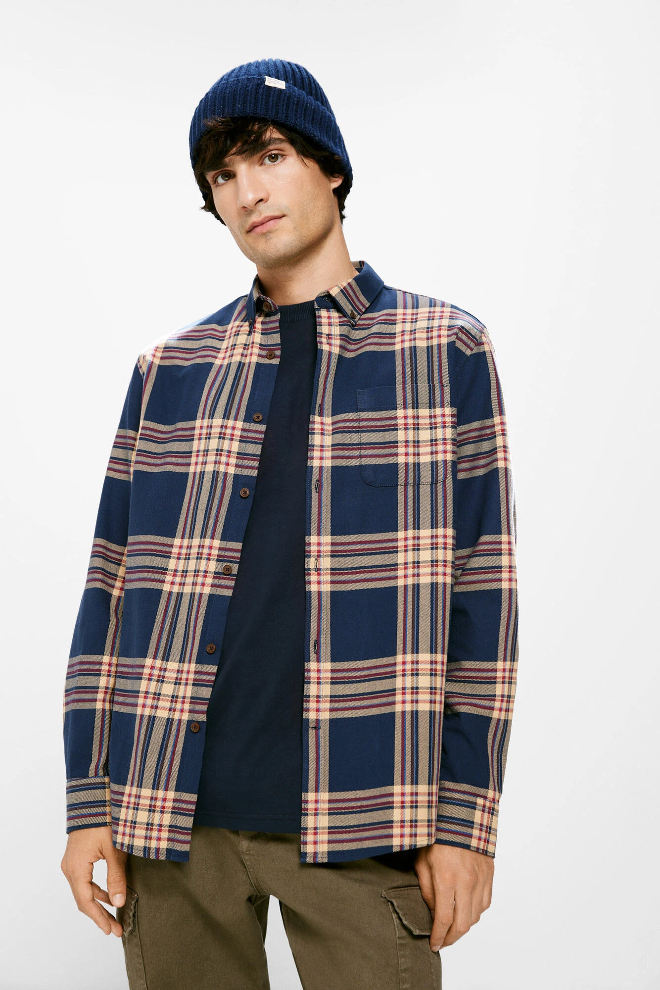 Camisa de manga larga, custom fit, en tejido tipo twill en algodón, con diseño de cuadros. Cuello abotonado. Un bolsillo en pecho.