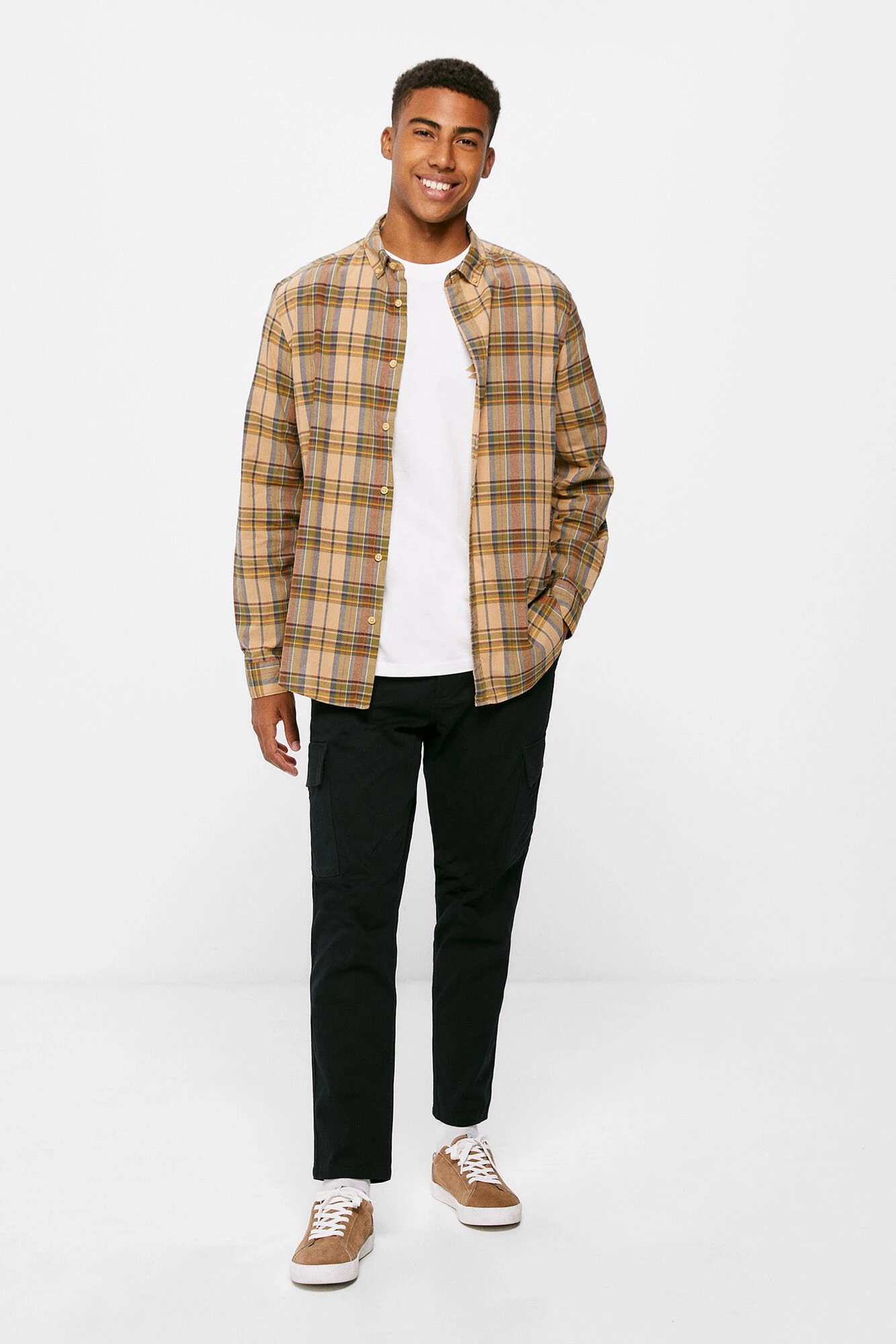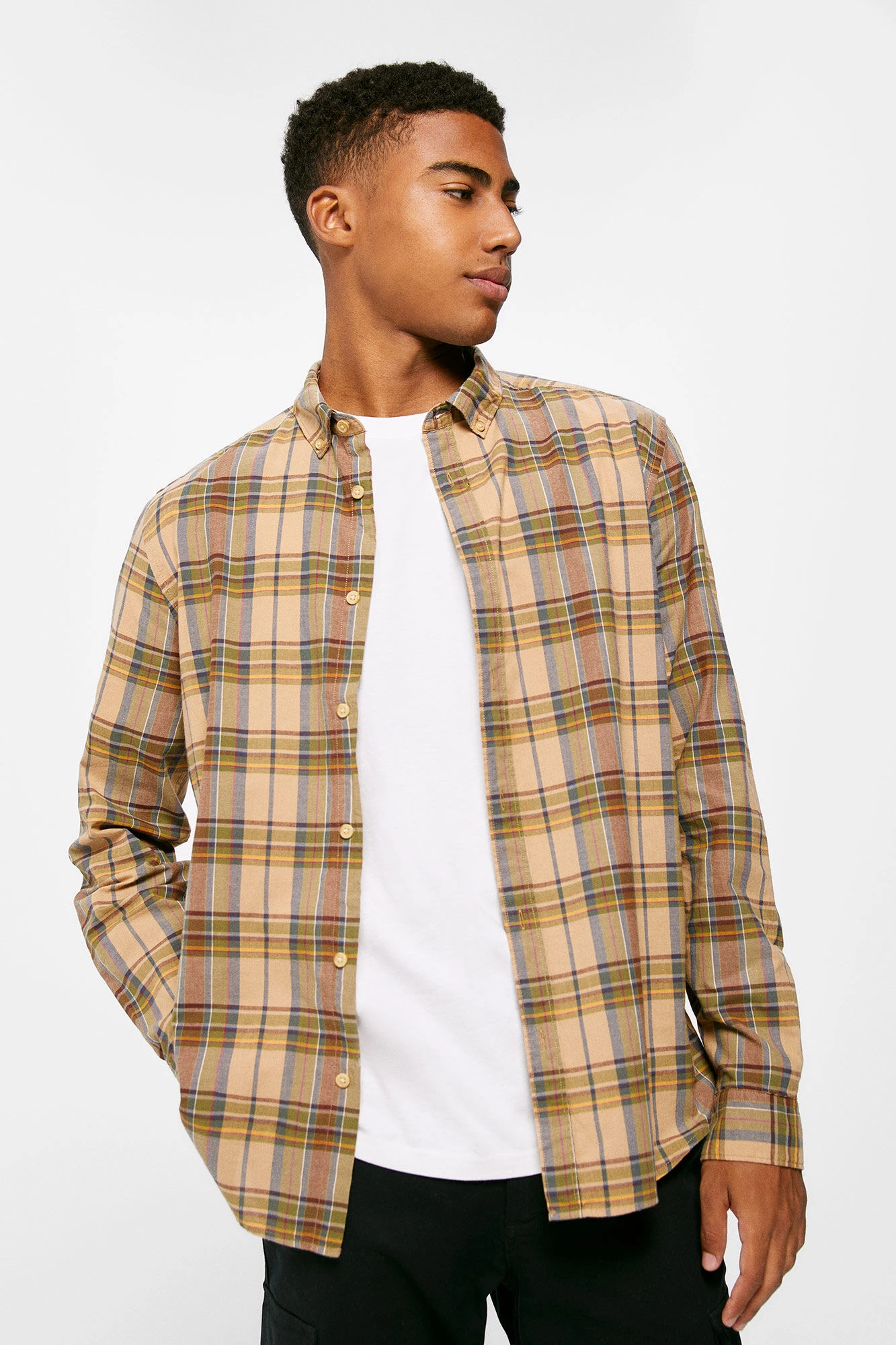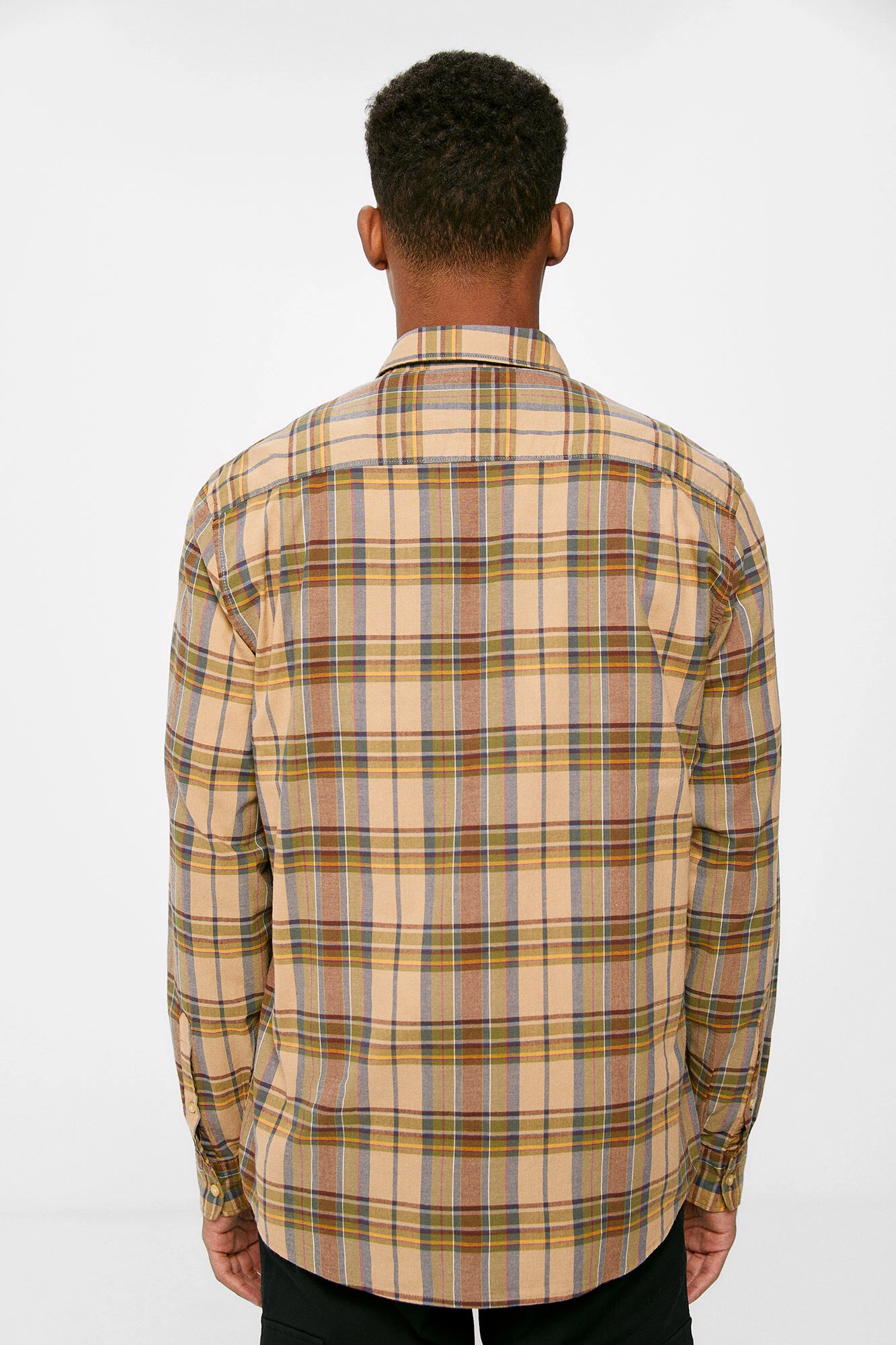 Camisa de manga larga, regular fit, en tejido de algodón de cuadros. Cuello abotonado. Proyecto RECONSIDER.