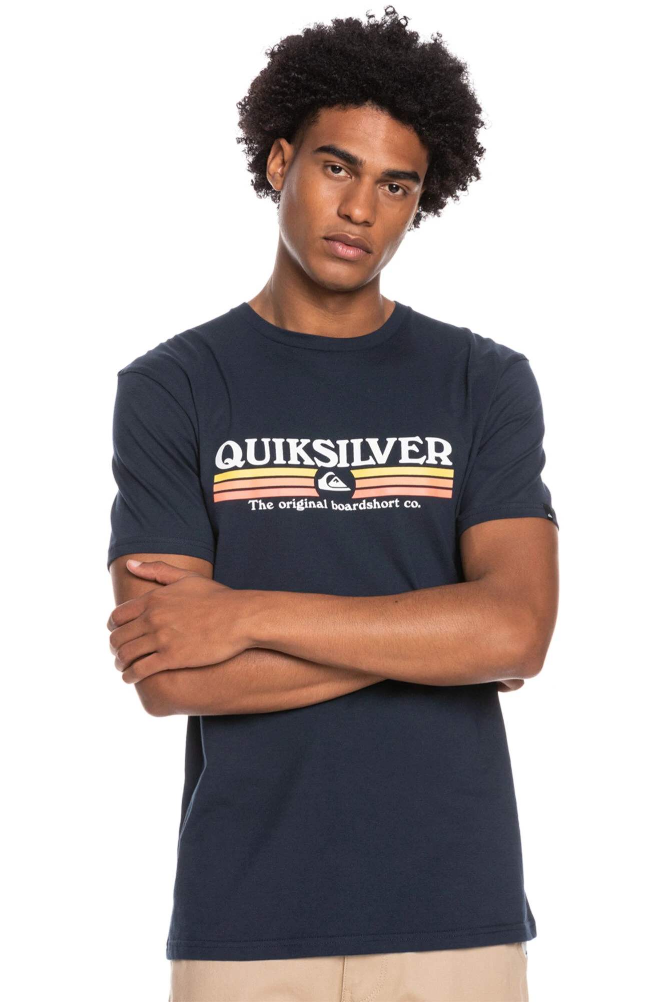 Camiseta de manga corta para Hombre. Características incluyen: Mangas: manga corta, Tejido: Tejido de punto jersey hecho de algodón [160 g / m2], Corte: corte n … ormal, clásico, cómodo, Cuello: Cuello redondo, Diseño con serigrafía en el pecho y Etiqueta de tela con marca Quiksilver en la manga.