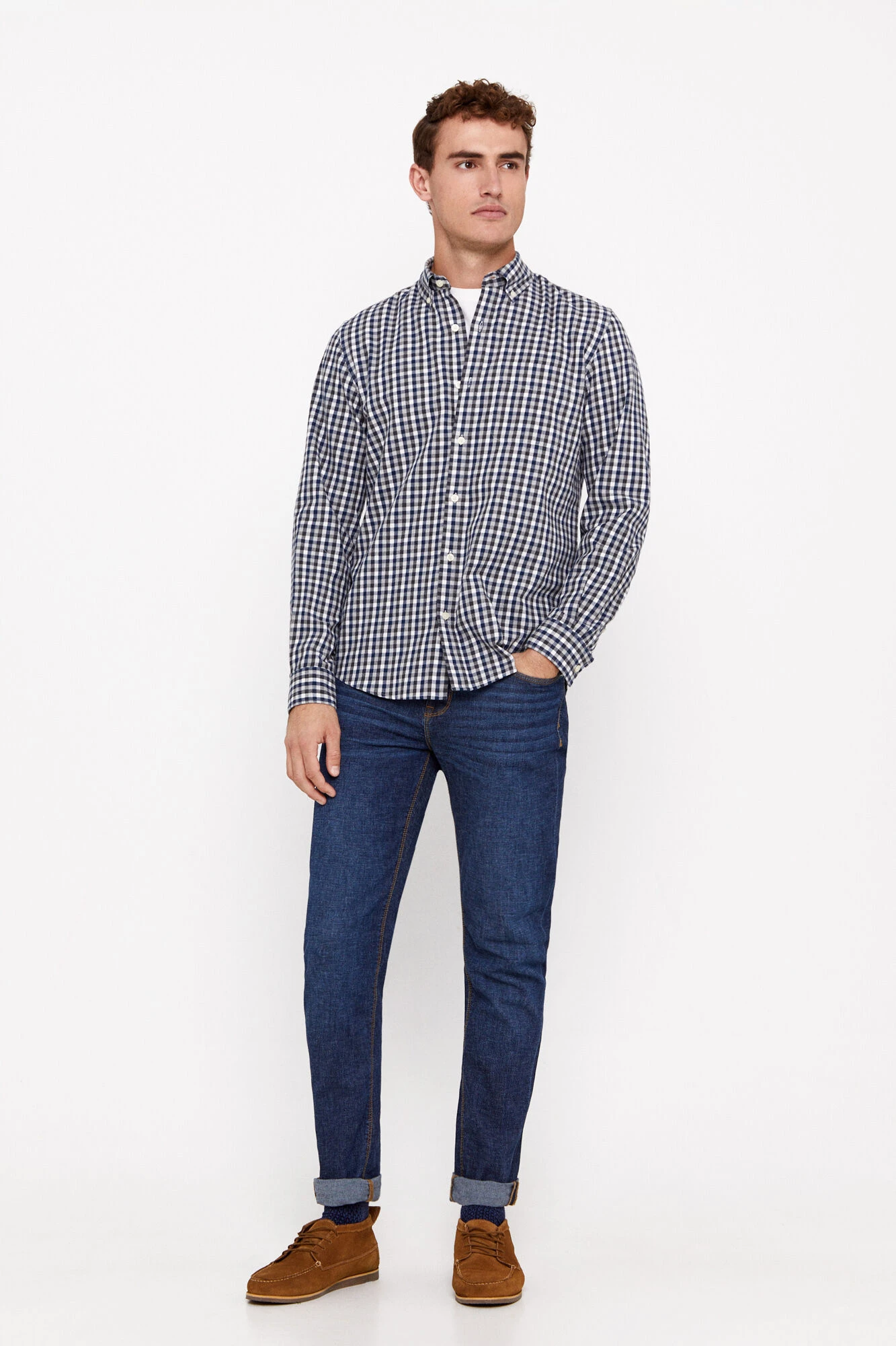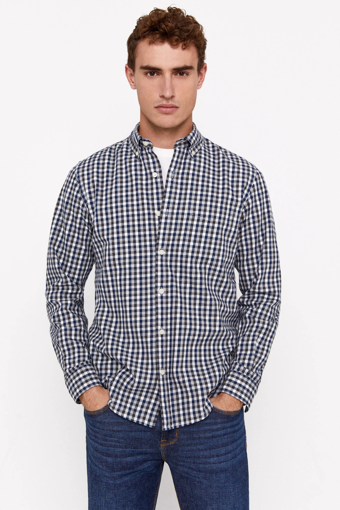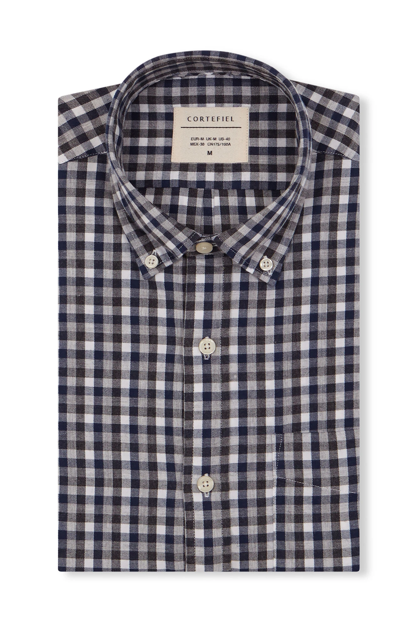 – cuello con botónbolsillo de pecho