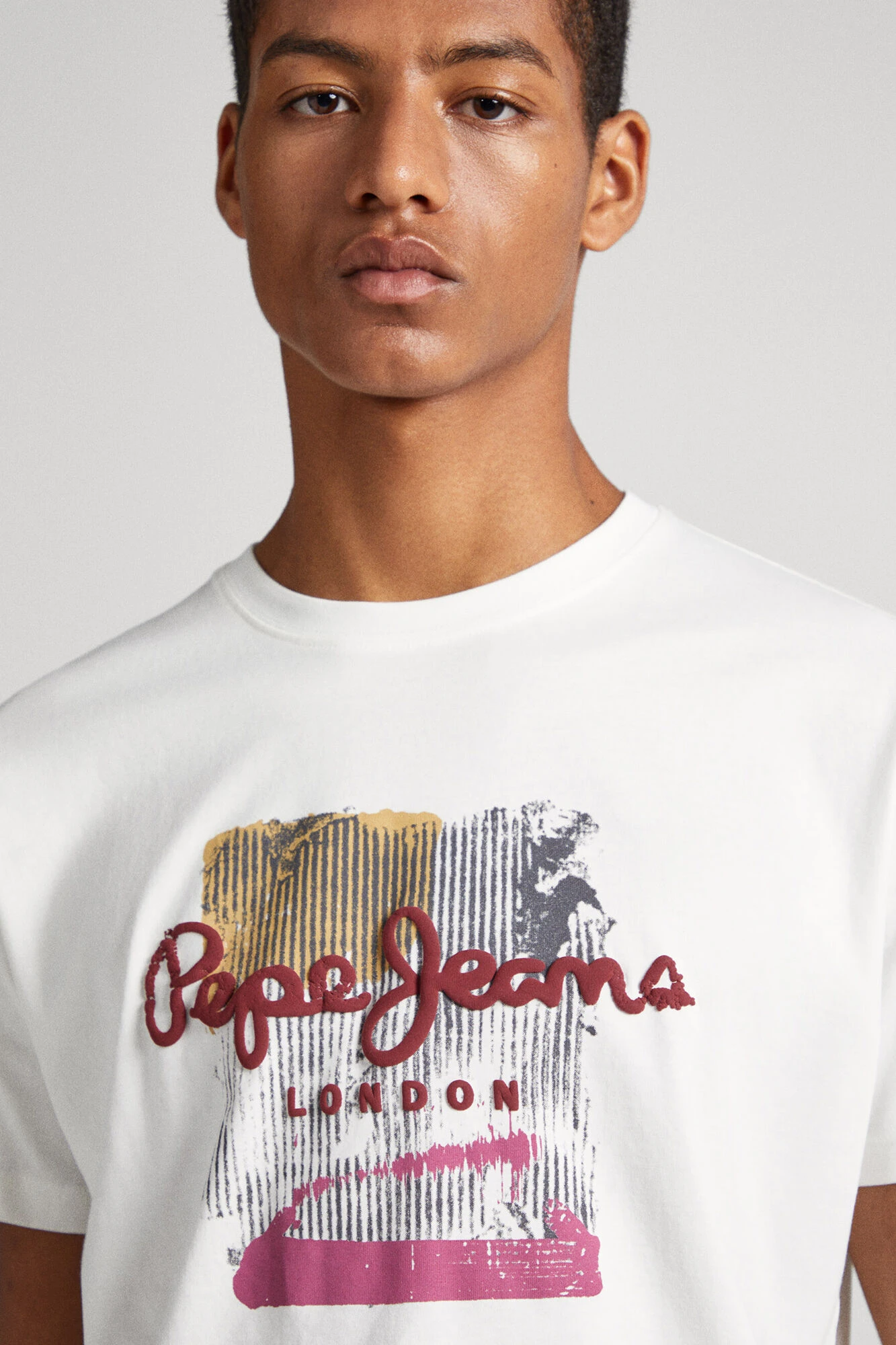 Camiseta Portobello en tejido suave de fit regular, manga corta, cuello redondo, color liso con logo PEPE JEANS sobre estampado puff en frontal, acabado doble p … espunte en bajo y mangas , cinta con logo estampado al interior del cuello. Fabricada 100% en algodĂłn sostenible