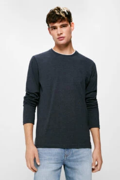 Camiseta manga larga en piquÉ melange color con efecto de cuello doble a contraste. Logo de árbol al tono. Colección RECONSIDER.