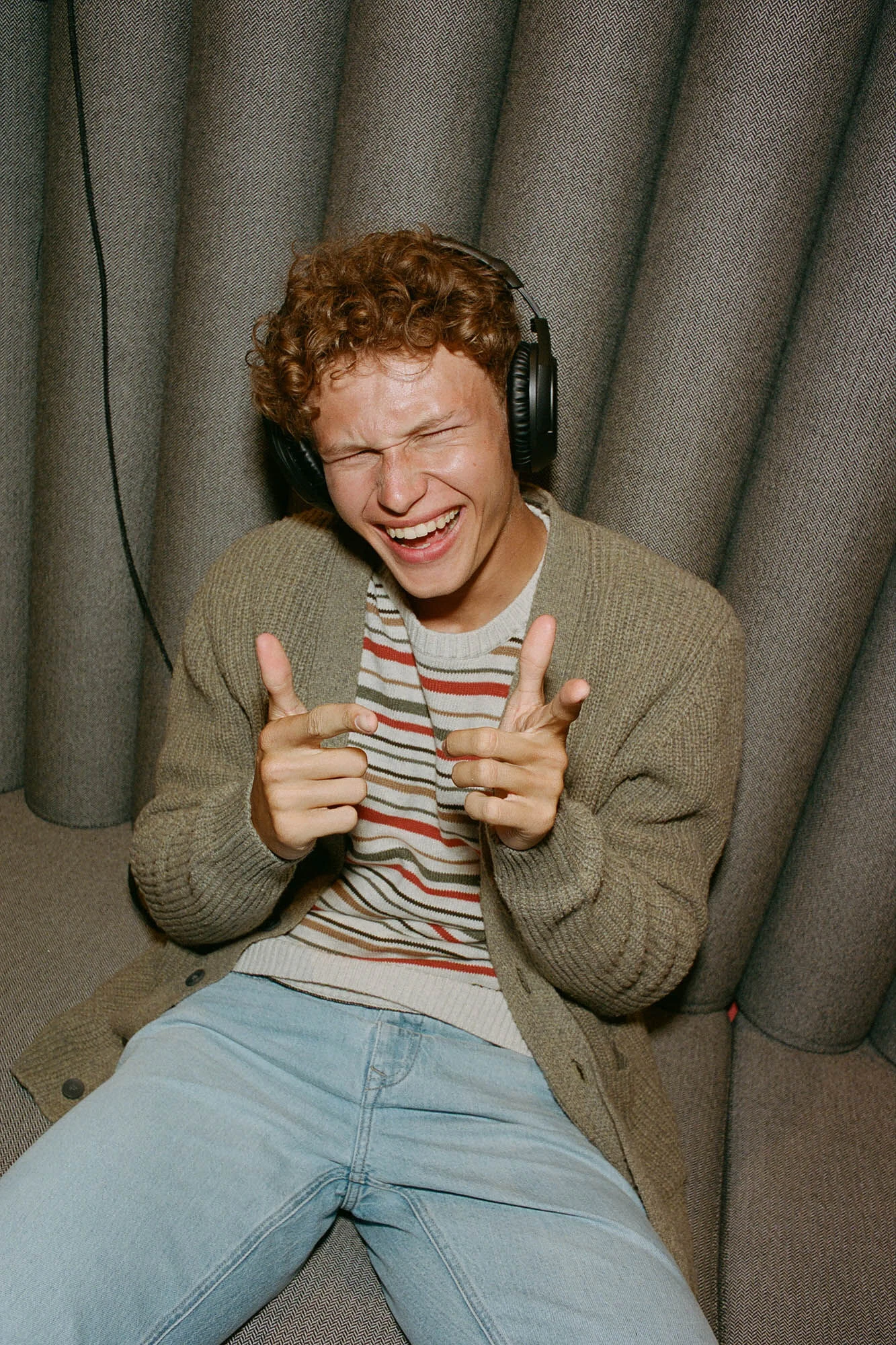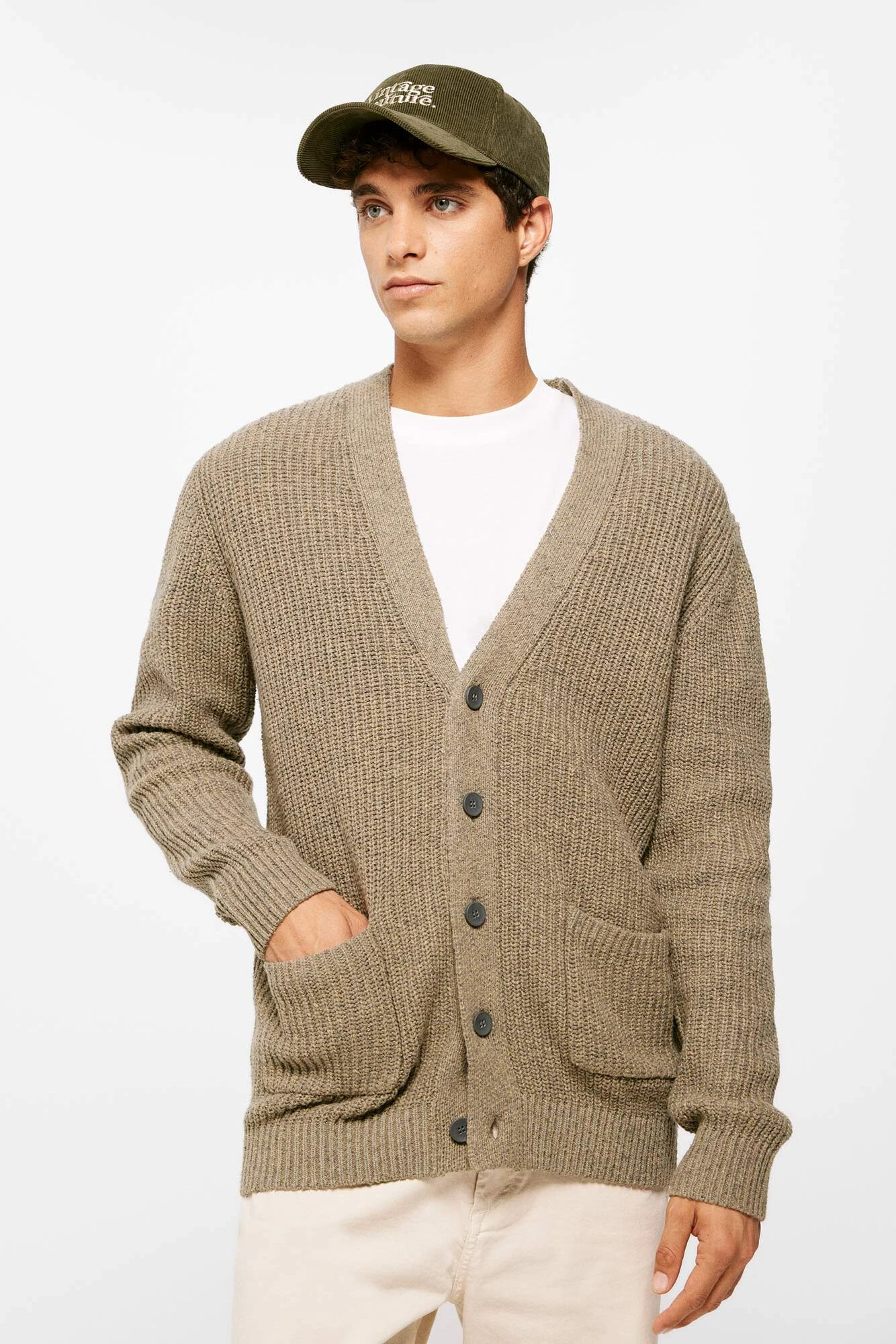 Cardigan hilatura de fantasía en punto canalé. Puños y bajos en canalé.