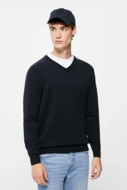 Jersey básico cuello pico en 100% algodón .Puños y bajos en canalé .Proyecto RECONSIDER.