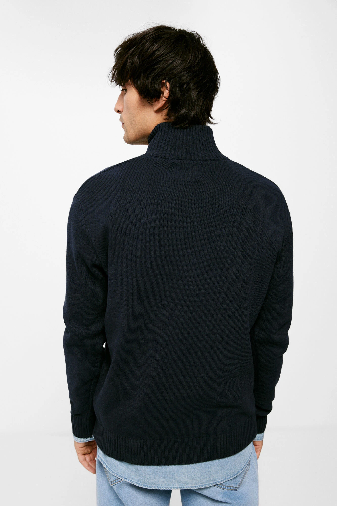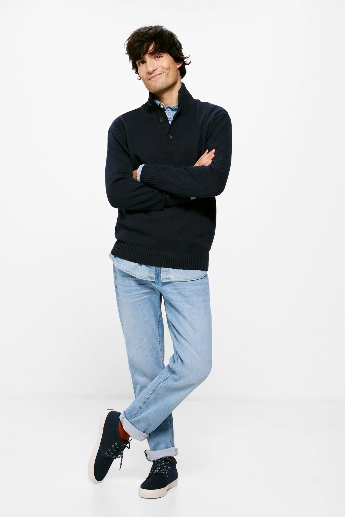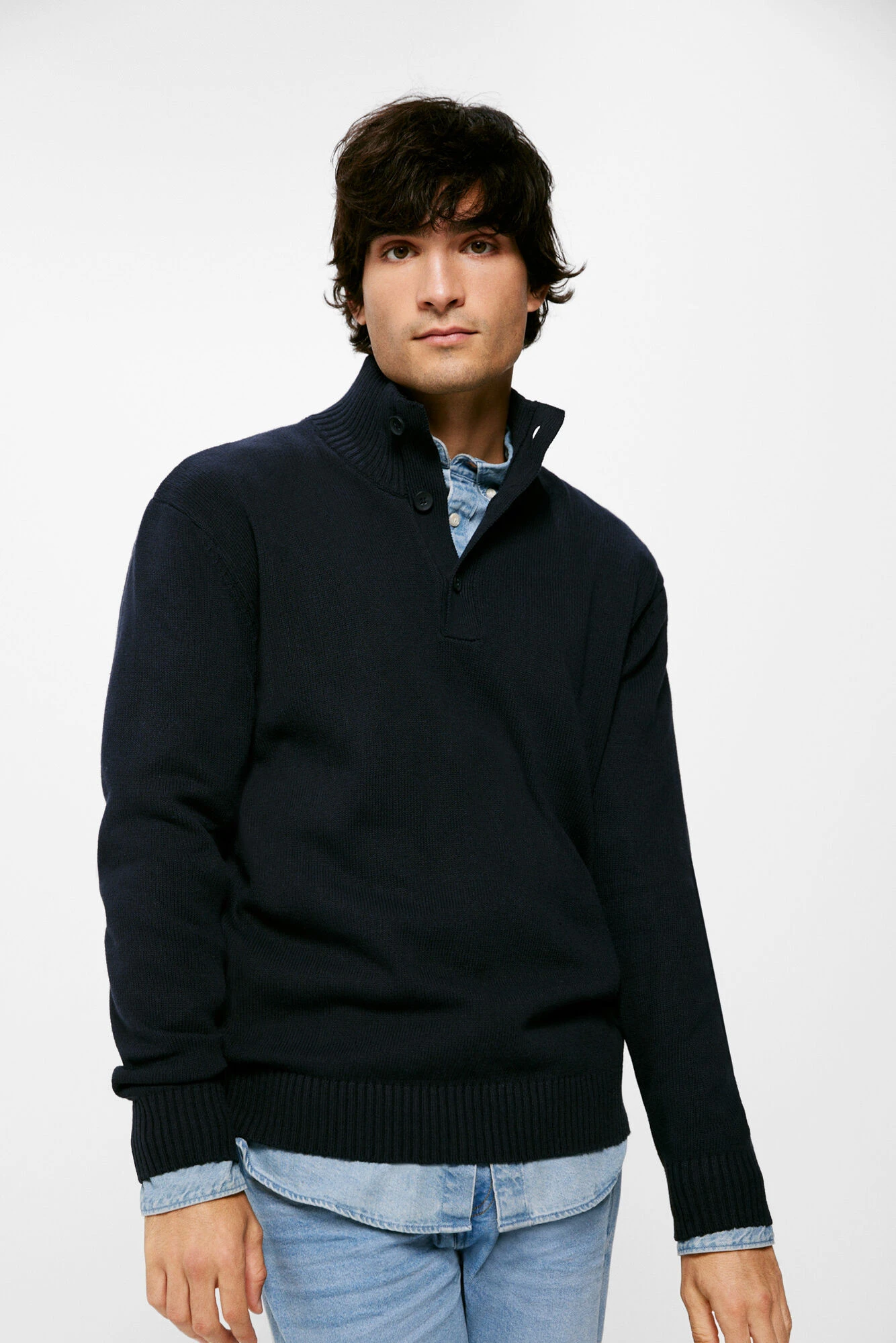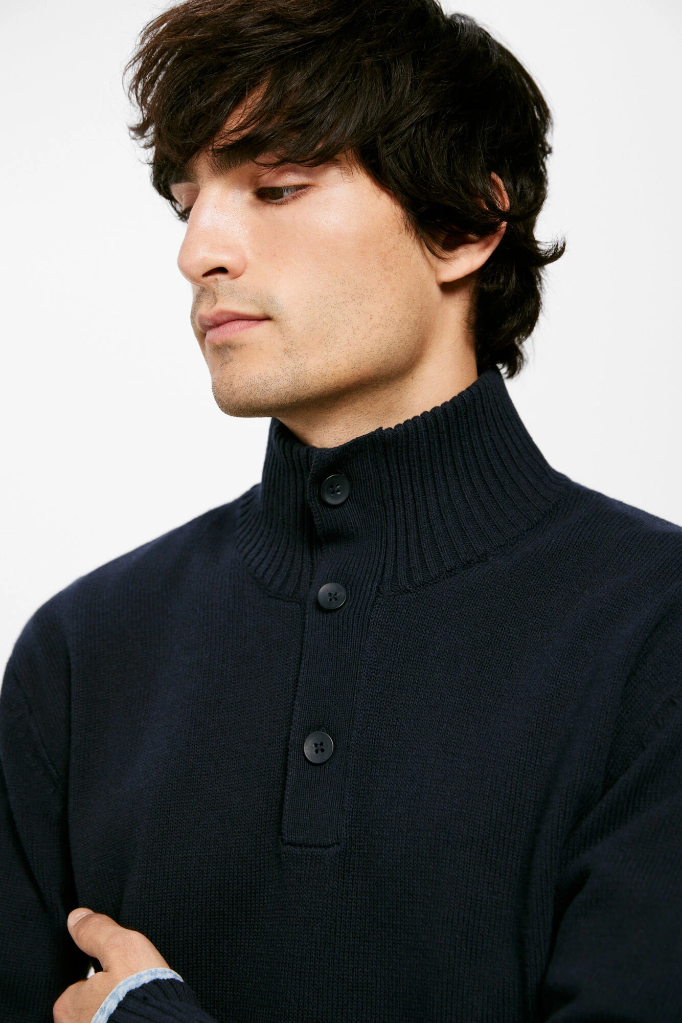 Jersey de algodón y poliéster reciclado con cuello alto de botones . Puños & bajos en canále .