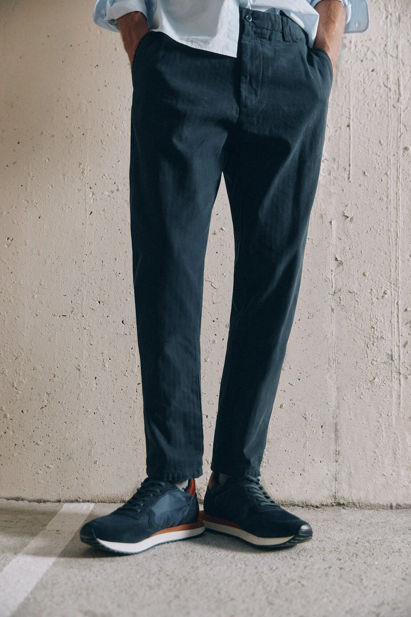 Fit Slim Cierre cremallera y botón Etiqueta logo avión en bolsillo trasero Pertenece al programa Better Cotton