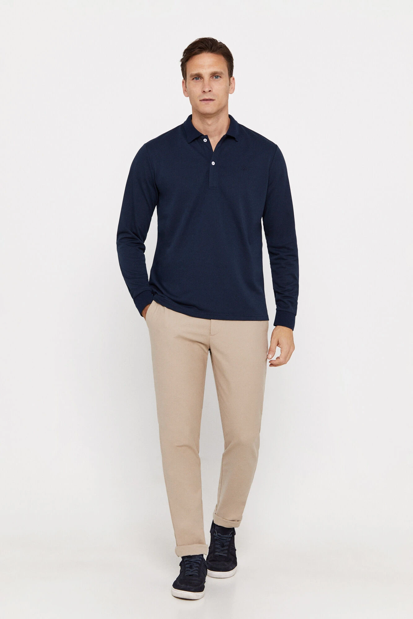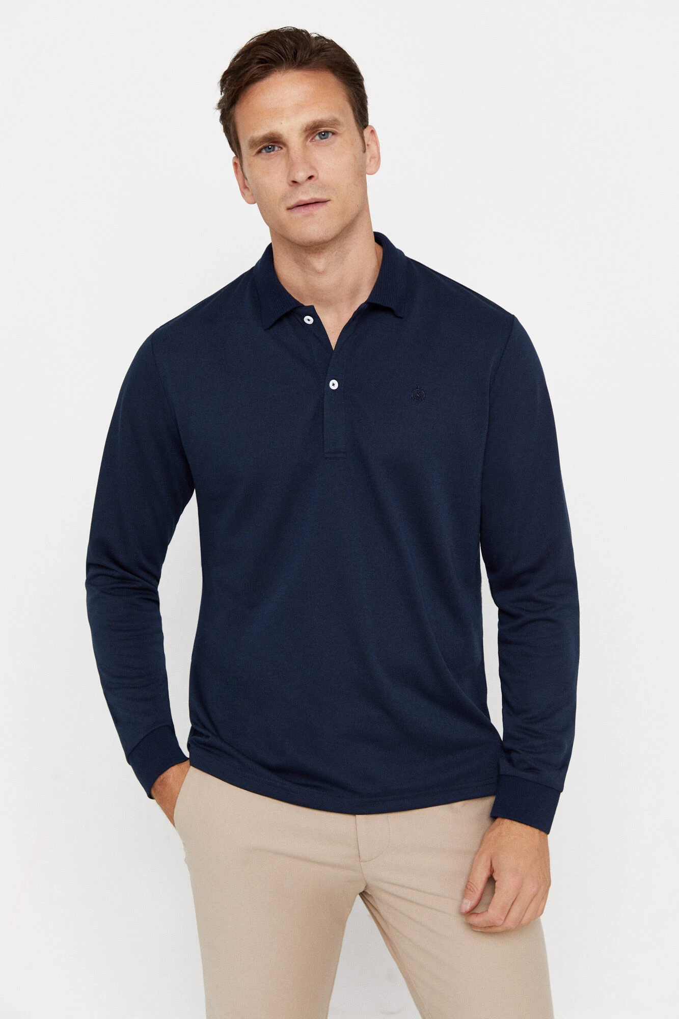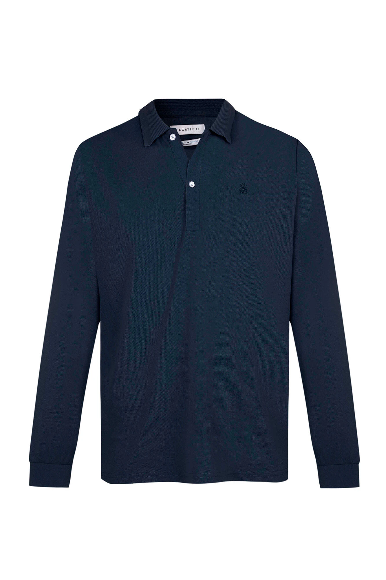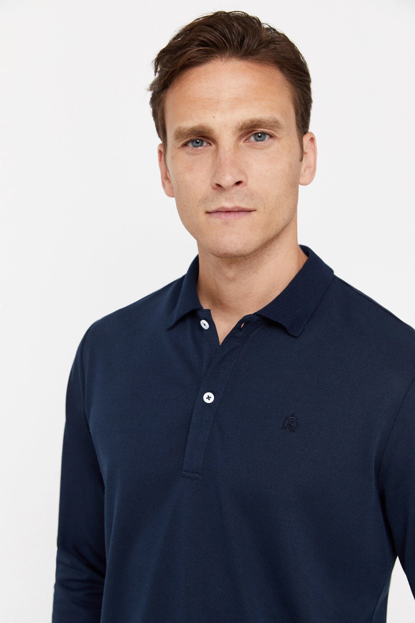 – cuello fantasía, tapeta con botones y logo bordado en el pecho