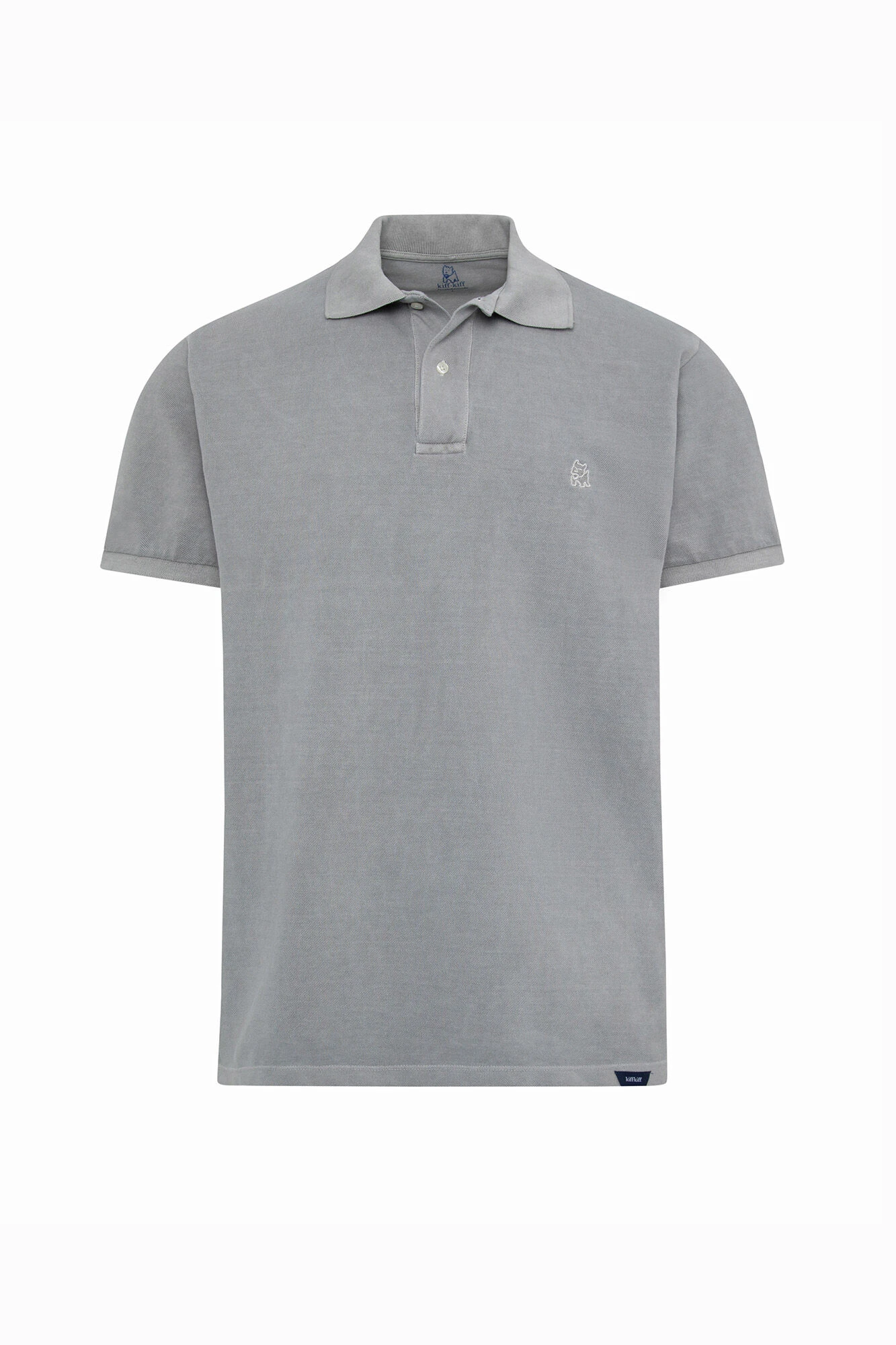 Polo color azul claro efecto lavado en 100% algodón. Dos botones y logo de la marca al tono en lado izquierdo del pecho.