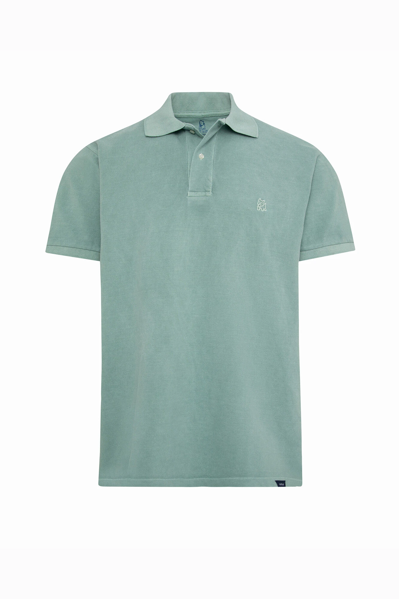 Polo color verde efecto lavado en 100% algodón. Dos botones y logo de la marca al tono en lado izquierdo del pecho.