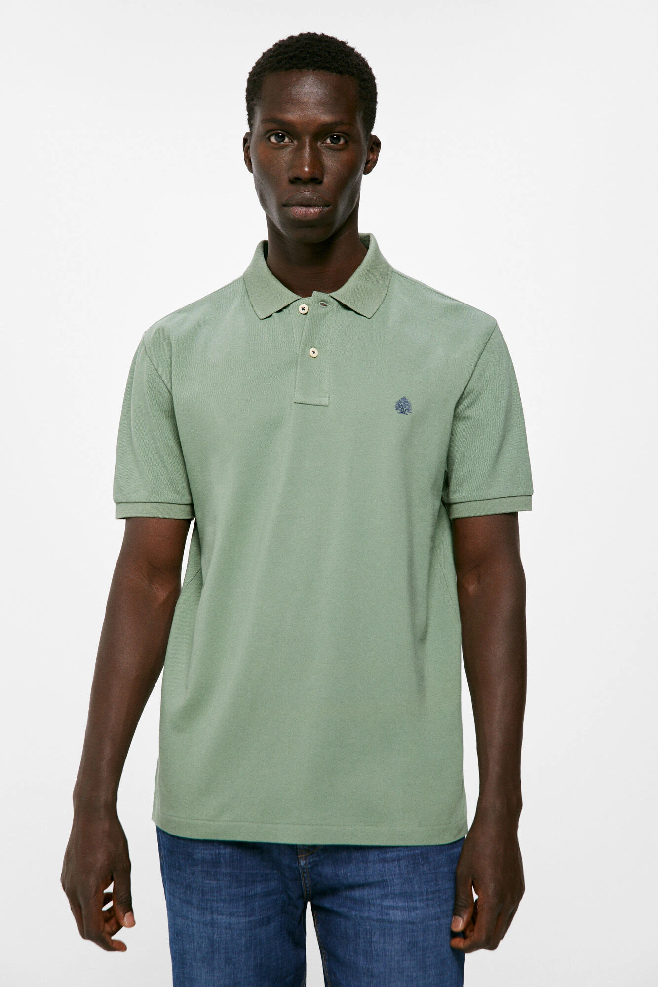 Polo de piqué regular fit confeccionado en 100% algodón con bordado de árbol en el pecho. Colección RECONSIDER.