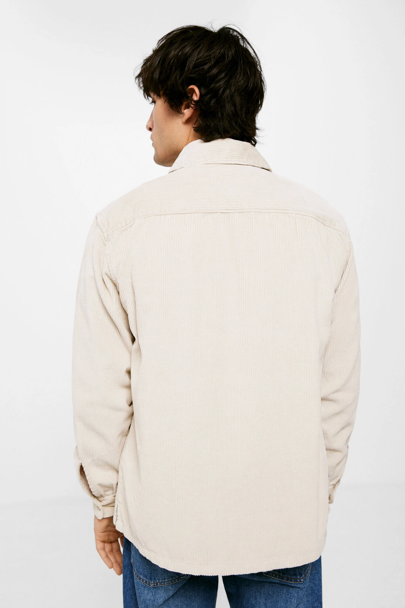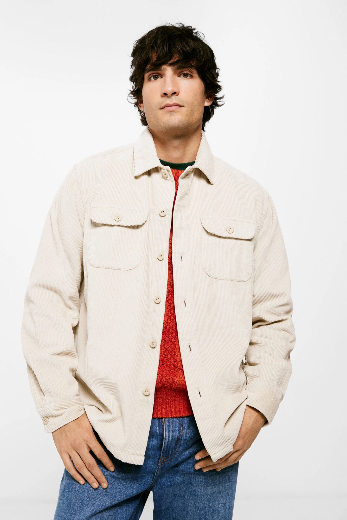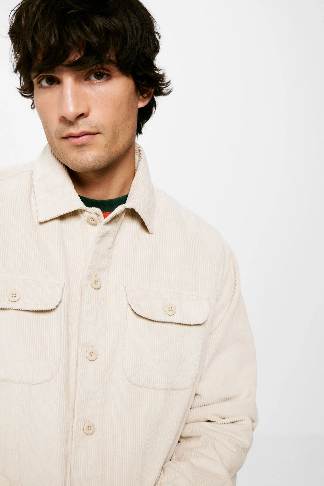 Sobrecamisa, overshirt fit, en tejido de pana de algodón. Dos bolsillos con tapeta en el pecho. Proyecto RECONSIDER.