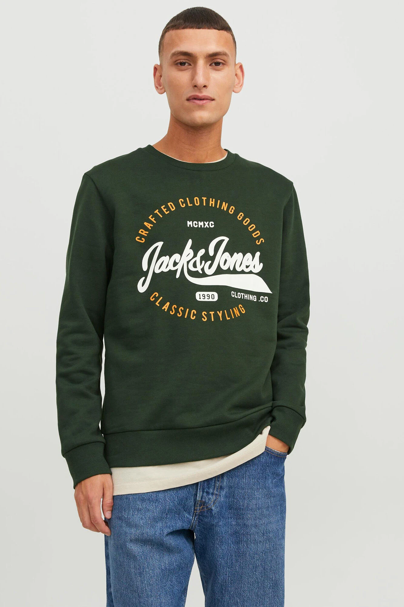 Sudadera con cuello redondo y manga larga. Estampado de texto combinado a contraste en delantero. Acabados en rib.