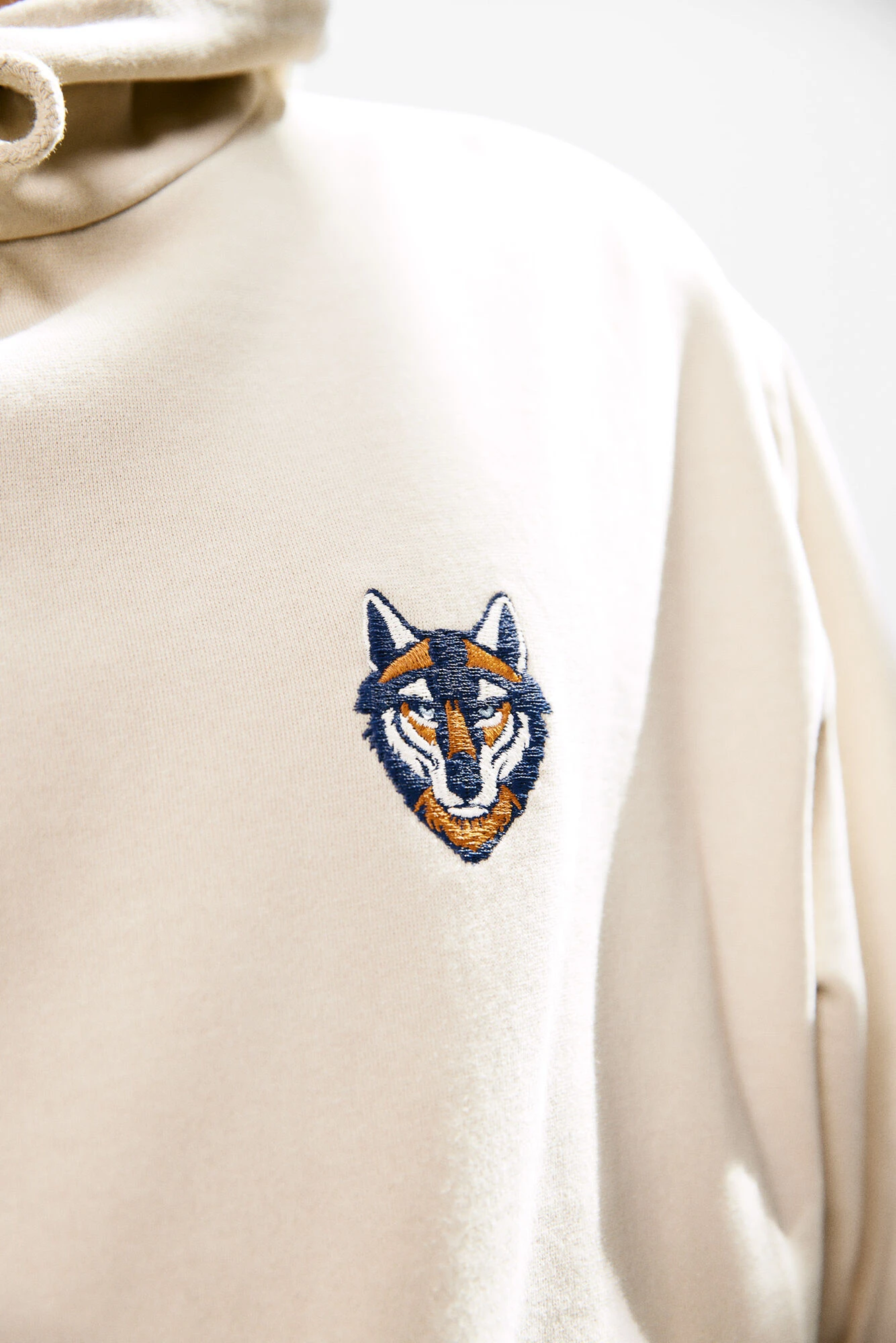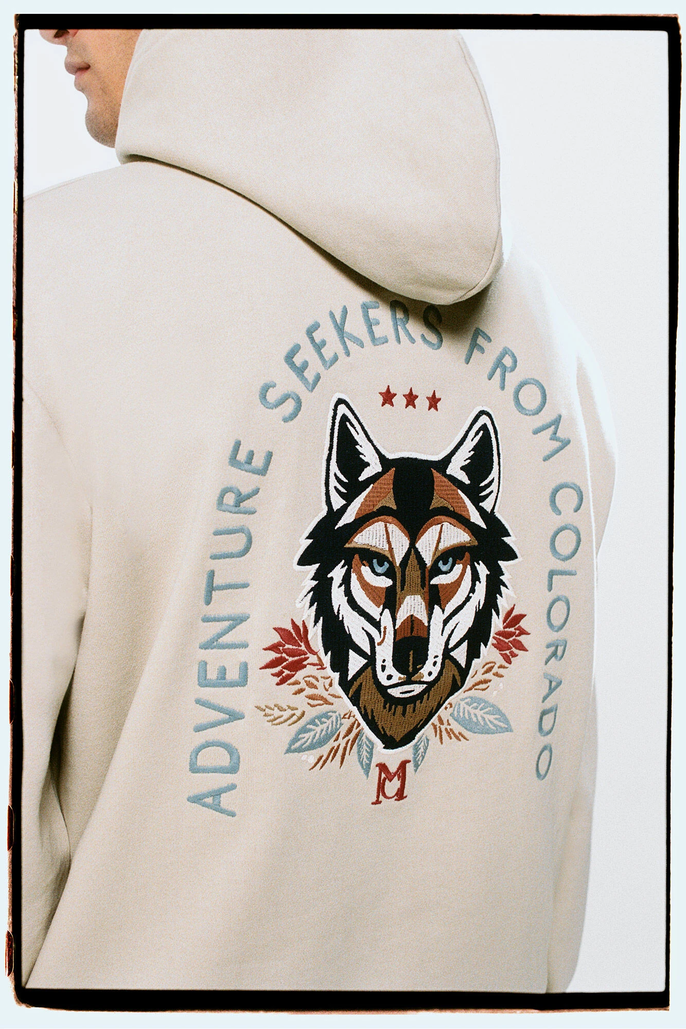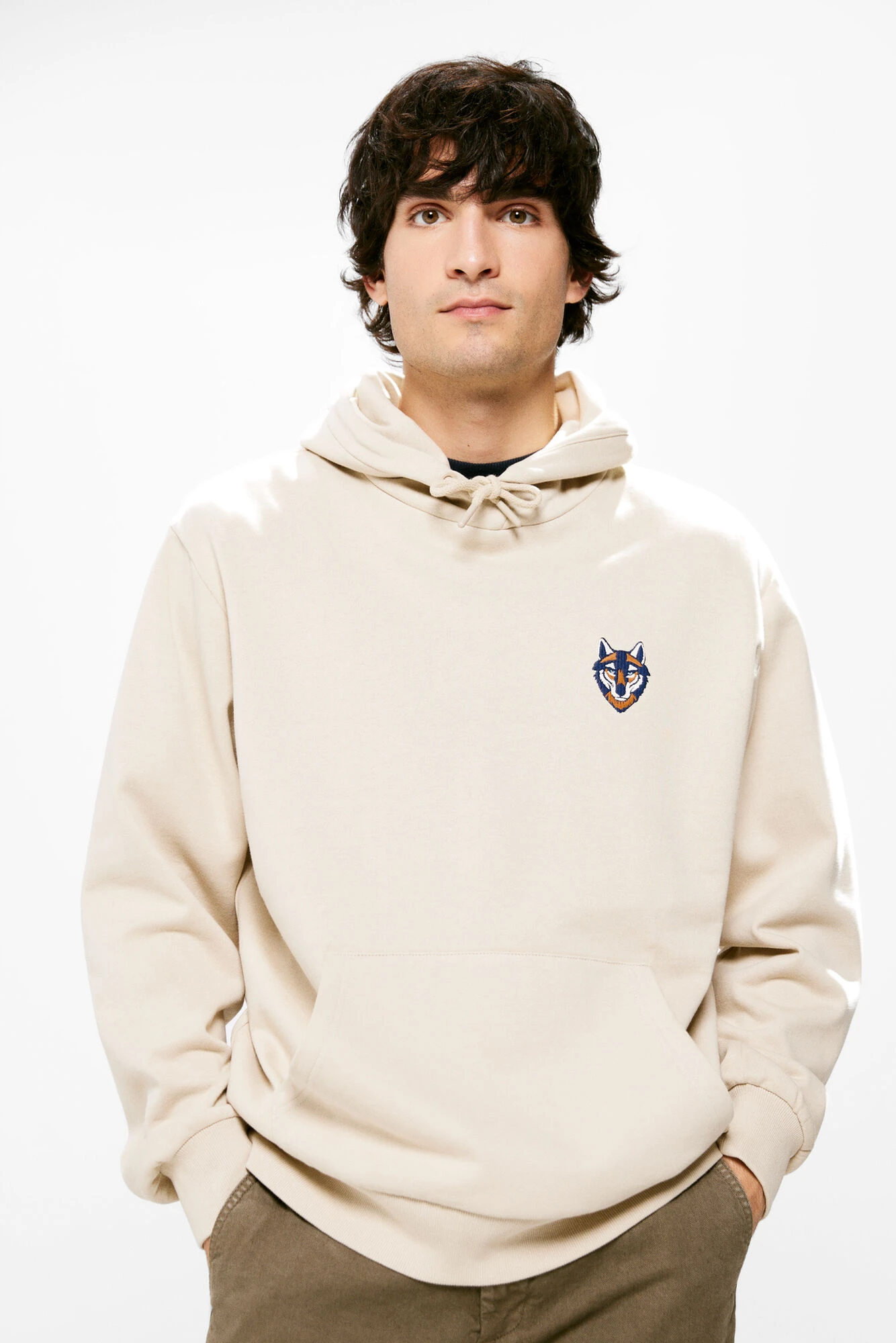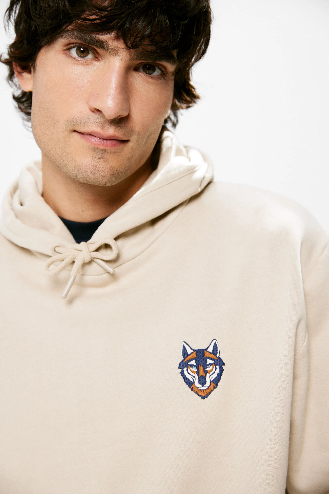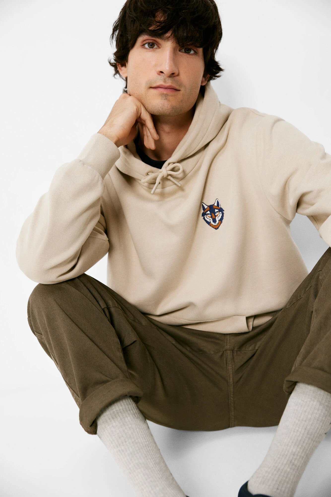 Sudadera capucha regular fint en algodĂłn perchado, bolsillo canguro y bordado multicolor en delantero y espalda. ColecciĂłn RECONSIDER.